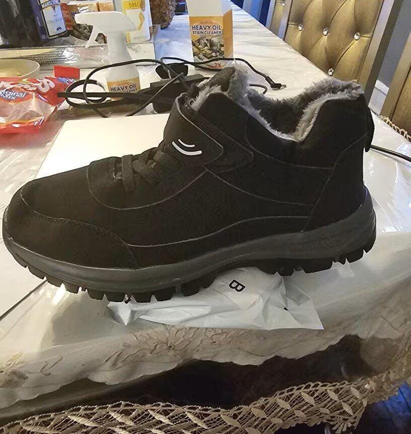 The sole is made of anti-skid TPR material, which makes you safe enough to walk on the snow. Leather and Fleece upper is durable and not easy to be scratched.